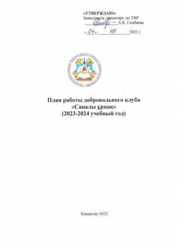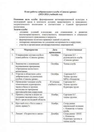 План работы добровольного клуба "Саналы ұрпақ"